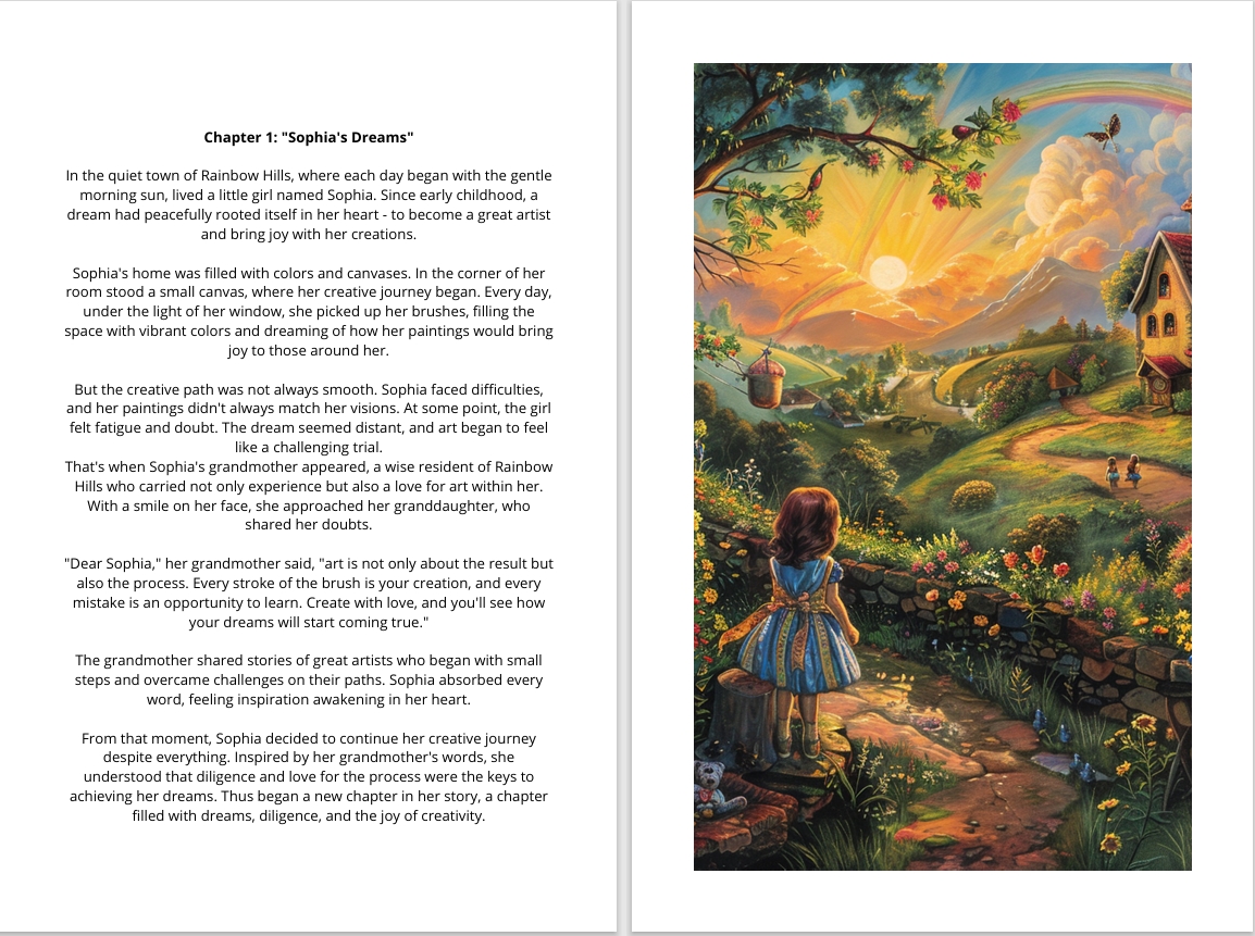 Мы решили поделиться с вами одной из страниц этой проникновенной и вдохновляющей книги. Она рассказывает историю маленькой девочки по имени София, чья мечта стать художницей освещает ее путь. Под руководством мудрой и любящей бабушки София знает, что истинное искусство — это не только результат, но и сам путь — любовь, терпение и радость в каждой мазке кисти. Пусть эта история помнит, что вам необходимо достичь своих мечтаний и творить сердцем. 💛